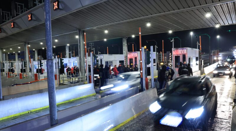Οι αγρότες στα διόδια του Ωραιοκάστρου δεν σήκωσαν τις μπάρες, ωστόσο παρέμειναν εκεί και μοίρασαν όσπρια και κηπευτικά στους διερχόμενους οδηγούς.